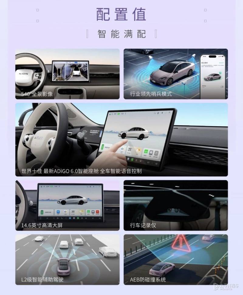 在辅助驾驶方面,埃安AION RT换电版搭载常规L2级辅助驾驶系统,支持全速域自适应巡航、 车道保持辅助、车道偏离预警、车道居中保持、道路交通标识识别、方向盘离手检测等功能。