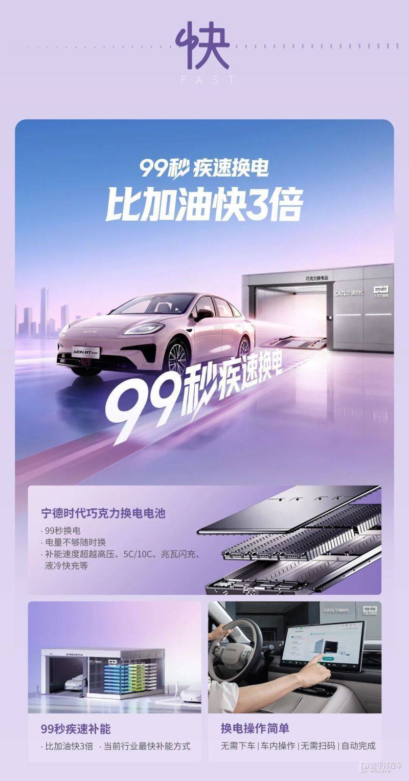 【太平洋汽车 新车频道】4月8日,埃安AION RT换电版(RT super)正式上市,新车指导价为12.88万元,电池租用购车售价为8.88万元,月租低至399元,并限时减免至高4个月租金。作为新增车型,该车搭载54.036千瓦时宁德时代巧克力换电电池,CLTC纯电续航505km,并支持99秒完成换电。